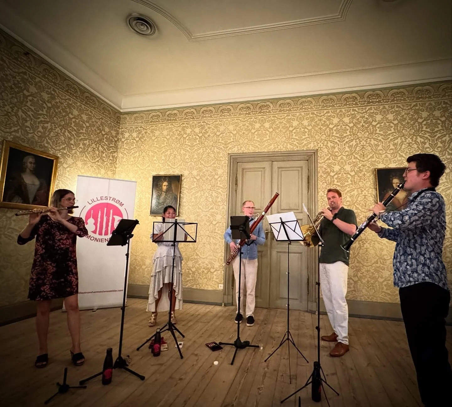 Vi avsluttet sesongen med en konsert på historiske Oslo Ladegård. Denne gangen stilte vi med kvintetten vår. Konserten var godt besøkt med over 30 i salen og Ladegården viste seg å være et flott konsertlokale for en blåsekvintett!